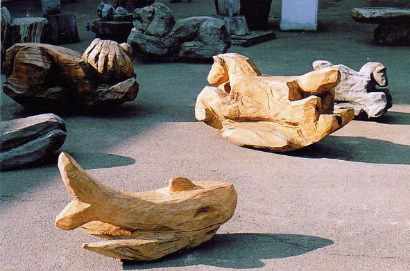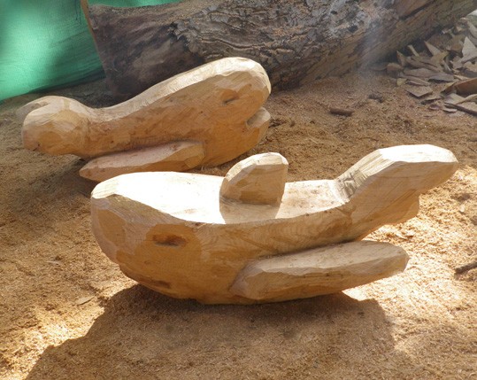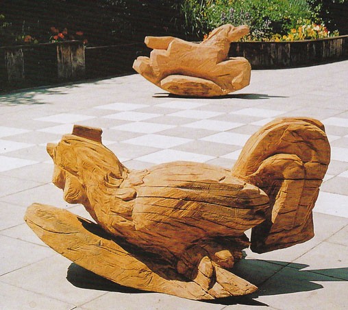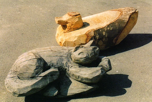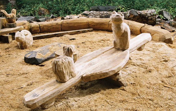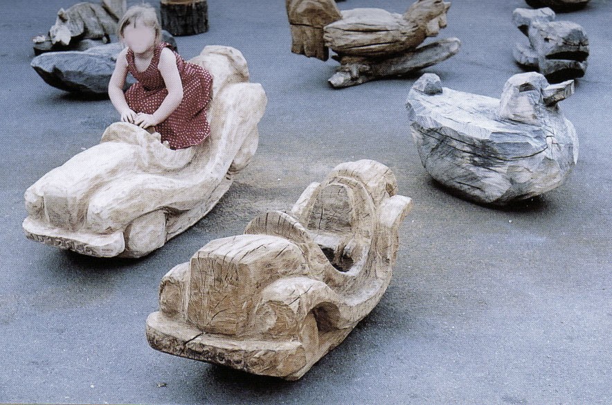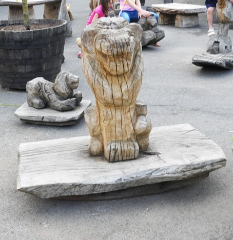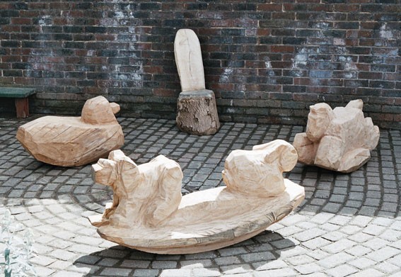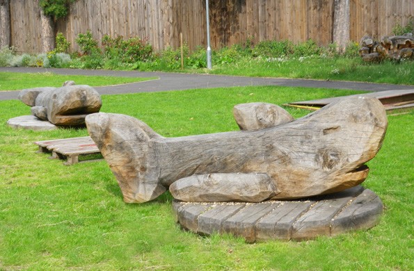 My animal play sculptures are carved and shaped with the chainsaw from single logs of wood which are sourced locally from tree surgeons and wind blown trees.
